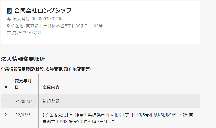 ちなみに、元々は神奈川県のレンタルオフィスが所在地だったようですが、上記の内容を見る限り住所がまた変更となっているようです。