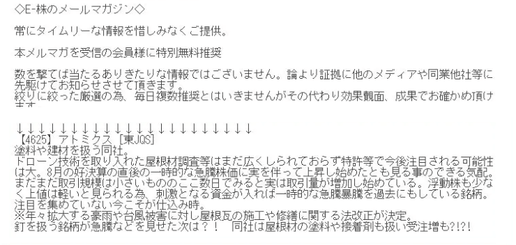 上の画像は、E-株(e株 良い株)のメールマガジンで配信された、無料銘柄情報です。
