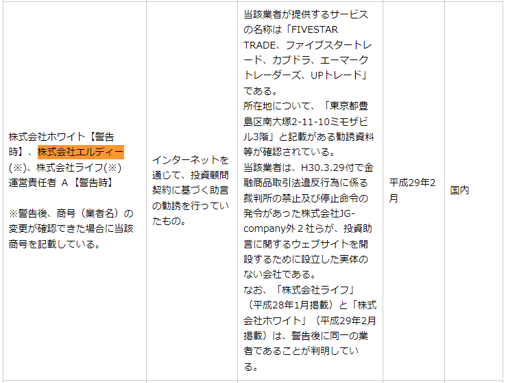 運営元である株式会社エルディーについてネットで調べてみたところ、金融庁に無許可で運営していたことが判明しました。