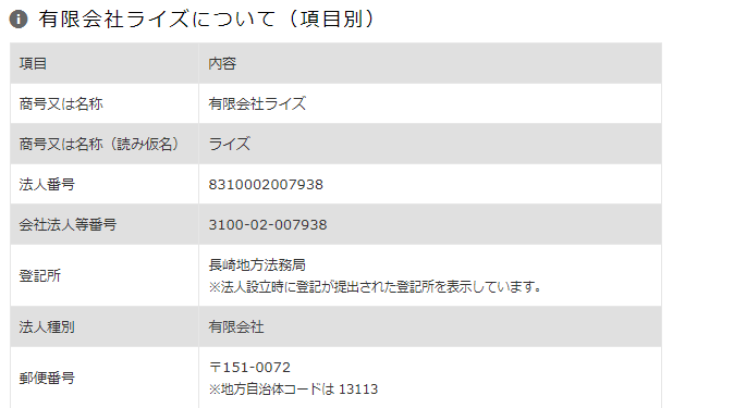 どのような経緯で、全く無関係な投資情報を取り扱う会社に変貌を遂げたのかは不明ですが、所在地も長崎から東京へ移し、会社の商号名も「有限会社ライズ」と2022年12月5日に変更しています。