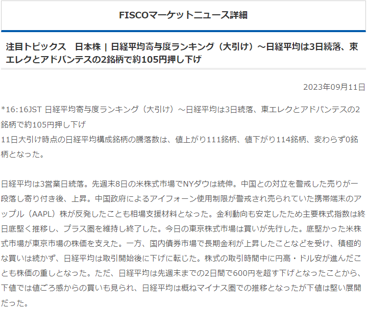 上記の内容が本当であるならば、自社分析には余念が無いと予想されますが、無料情報一覧にある「米市場振り返りと本日の相場の見通し」では、FISCOマーケットニュースからの文章の盗用がされていることが分かっています。