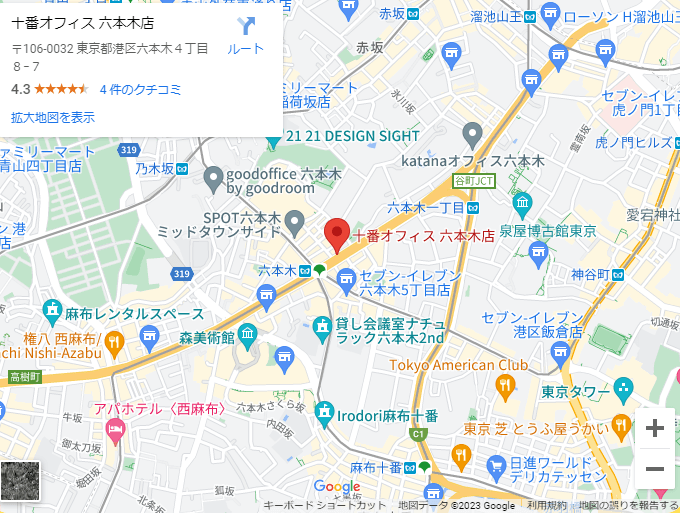 TENKEIを運営するオフィスインフォの所在地(東京都港区六本木4-8-7六本木嶋田ビル7F)を調べてみたところ、悪質な業者がよく利用する傾向があるレンタルオフィスだと言うことが判明。
