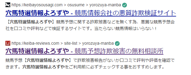 また、穴馬特選情報よろずやについてネットで調べてみると、やたらと好評している評判サイトもありますが、悪質な業者絡みの可能性が非常に高いので鵜呑みにしてしまうと大きな損失にも繋がり兼ねません。