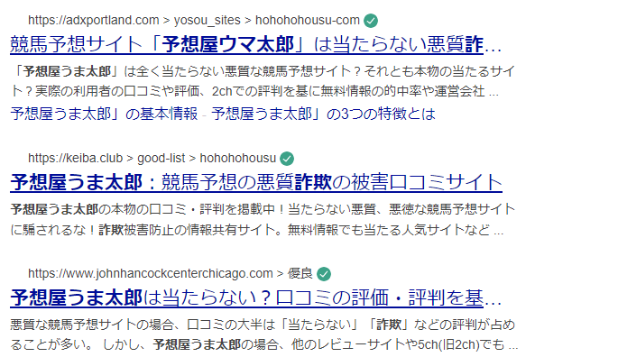 その中で、予想屋うま太郎についての口コミを掲載しているところがいくつかありますが、内容をよくみてみると全く別サイトなのに同じ口コミがいくつも投稿されていることが分かります。
